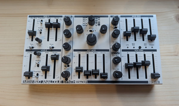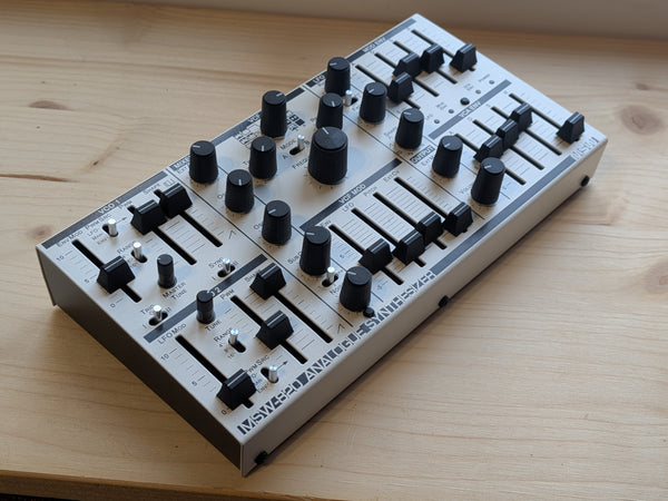 MSW-820 is a 2 oscillator based analogue monosynth with an advanced 16 mode voltage controlled filter, 2 envelope generators, digital LFO with sync and trigger functions, digital noise source with 8 flavors, MIDI (TRS or USB), all in a compact desktop or euro format.